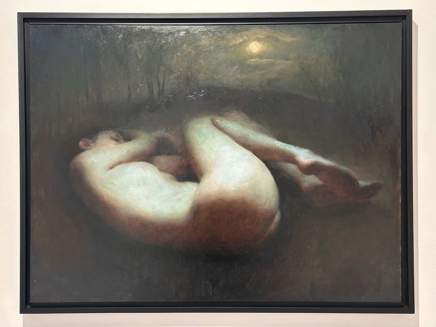 Well those pieces were heavy on concept so by the time I finished the second one, I was exhausted and discouraged and out of ideas. I started thinking about my friend Larisa Brechun’s painting I had seen at the New Salem Museum of Art because she was onto something I needed. Larisa doesn’t have a good photo of the painting so we’ll have to make do with the iPhone photo I took while I was there, glare and all: